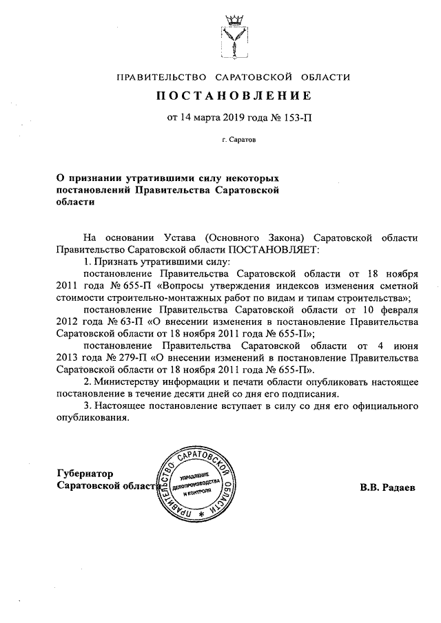 Постановление Правительства Саратовской области от 14.03.2019 N 153-П "О признании утратившими силу некоторых постановлений Правительства Саратовской области"