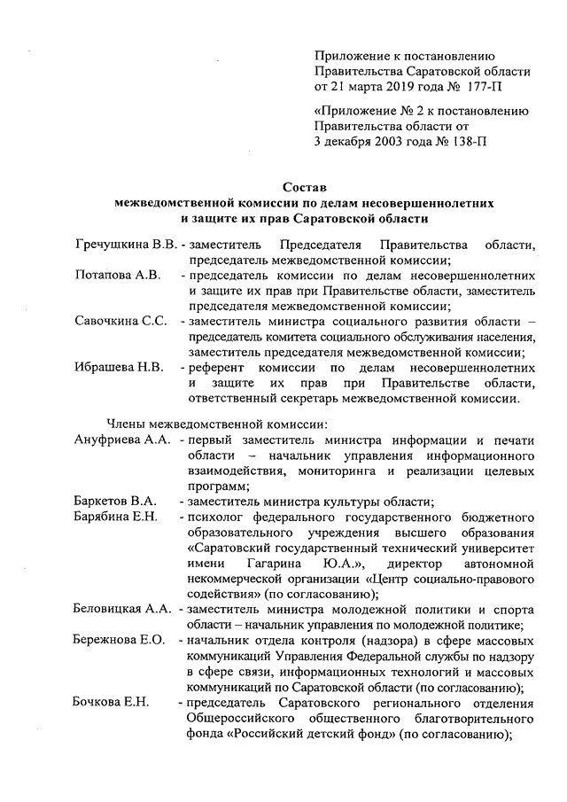 Постановление Правительства Саратовской области от 21.03.2019 N 177-П "О внесении изменений в постановление Правительства Саратовской области от 3 декабря 2003 года N 138-П"