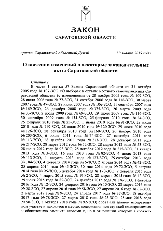 Закон Саратовской области от 05.02.2019 N 7-ЗСО "О внесении изменений в некоторые законодательные акты Саратовской области" (принят Саратовской областной Думой 30.01.2019)