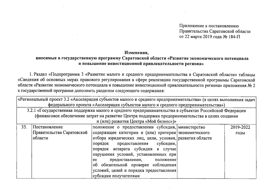 Постановление Правительства Саратовской области от 22.03.2019 N 184-П "О внесении изменений в государственную программу Саратовской области "Развитие экономического потенциала и повышение инвестиционной привлекательности региона"