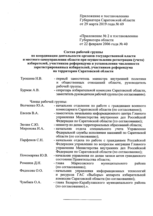 Постановление Губернатора Саратовской области от 29.03.2019 N 69 "О внесении изменения в постановление Губернатора Саратовской области от 22 февраля 2006 года N 40"