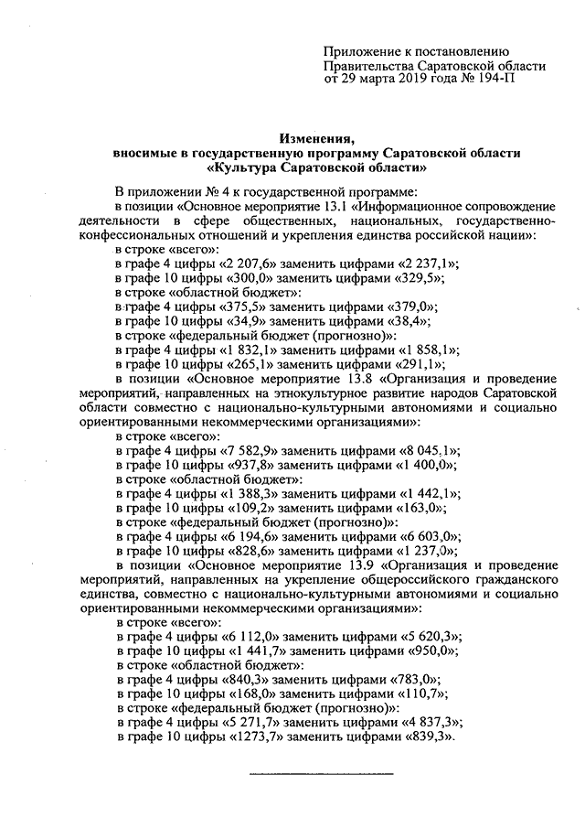 Постановление Правительства Саратовской области от 29.03.2019 N 194-П "О внесении изменений в государственную программу Саратовской области "Культура Саратовской области"
