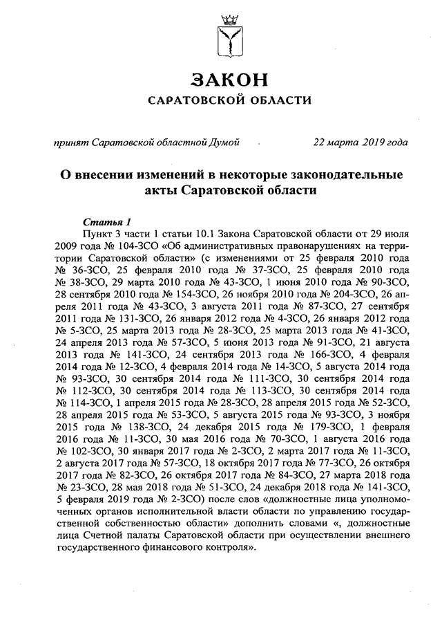 Закон Саратовской области от 29.03.2019 N 28-ЗСО "О внесении изменений в некоторые законодательные акты Саратовской области" (принят Саратовской областной Думой 22.03.2019)