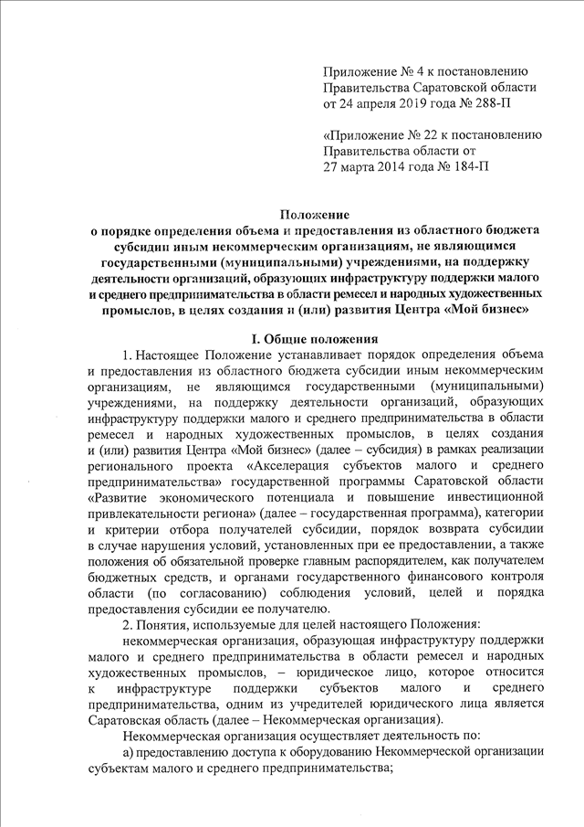 Постановление Правительства Саратовской области от 24.04.2019 N 288-П "О внесении изменений в постановление Правительства Саратовской области от 27 марта 2014 года N 184-П"