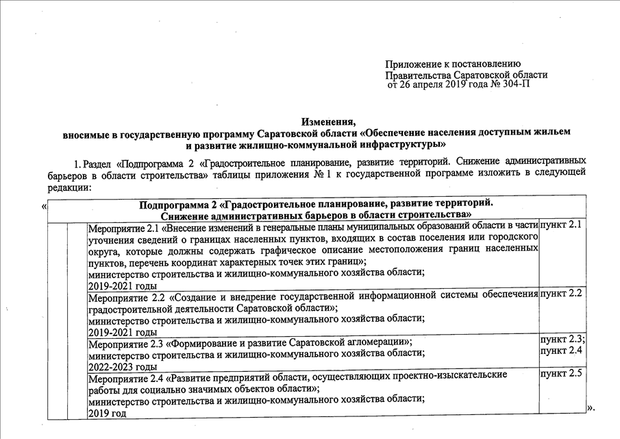 Постановление Правительства Саратовской области от 26.04.2019 N 304-П "О внесении изменений в государственную программу Саратовской области "Обеспечение населения доступным жильем и развитие жилищно-коммунальной инфраструктуры"