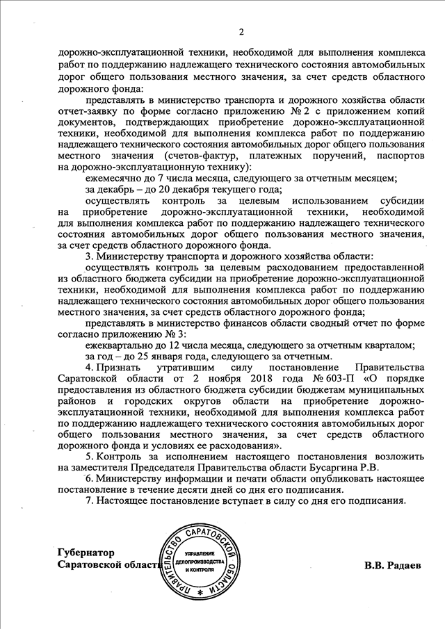 Постановление Правительства Саратовской области от 09.04.2019 N 235-П "О порядке предоставления из областного бюджета субсидии бюджетам городских округов области на приобретение дорожно-эксплуатационной техники, необходимой для выполнения комплекса работ по поддержанию надлежащего технического состояния автомобильных дорог общего пользования местного значения, за счет средств областного дорожного фонда и условиях ее расходования" (вместе с "Положением о порядке предоставления из областного бюджета субсидии бюджетам городских округов области на приобретение дорожно-эксплуатационной техники, необходимой для выполнения комплекса работ по поддержанию надлежащего технического состояния автомобильных дорог общего пользования местного значения, за счет средств областного дорожного фонда и условиях ее расходования")