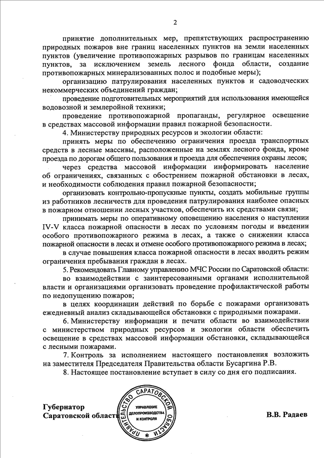Постановление Правительства Саратовской области от 26.04.2019 N 305-П "О введении особого противопожарного режима на землях лесного фонда на территории Саратовской области"