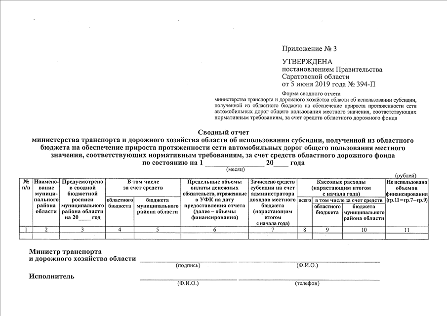 Постановление Правительства Саратовской области от 05.06.2019 N 394-П "О порядке предоставления субсидии бюджетам муниципальных районов области на обеспечение прироста протяженности сети автомобильных дорог общего пользования местного значения, соответствующих нормативным требованиям, за счет средств областного дорожного фонда и условиях ее расходования" (вместе с "Положением о порядке предоставления субсидии бюджетам муниципальных районов области на обеспечение прироста протяженности сети автомобильных дорог общего пользования местного значения, соответствующих нормативным требованиям, за счет средств областного дорожного фонда и условиях ее расходования")