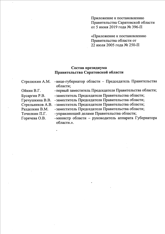 Постановление Правительства Саратовской области от 05.06.2019 N 396-П "О внесении изменения в постановление Правительства Саратовской области от 22 июля 2005 года N 250-П"