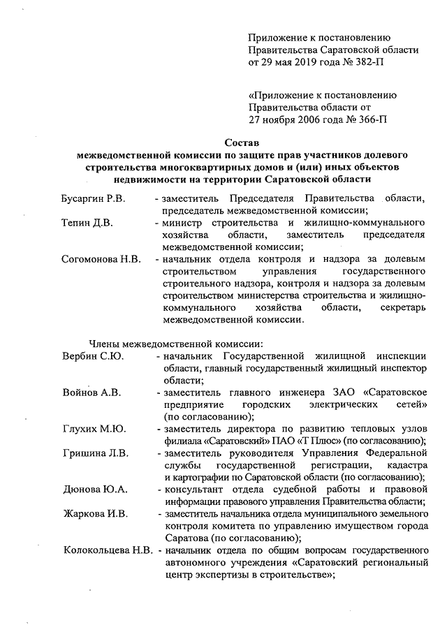 Постановление Правительства Саратовской области от 29.05.2019 N 382-П "О внесении изменения в постановление Правительства Саратовской области от 27 ноября 2006 года N 366-П"
