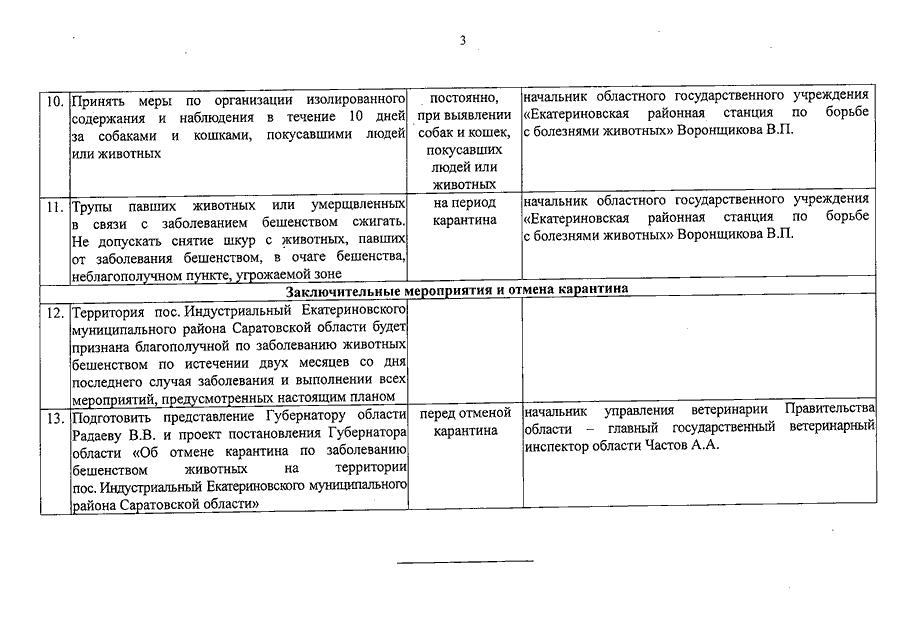 Постановление Губернатора Саратовской области от 03.06.2019 N 126 "Об установлении карантина по заболеванию бешенством животных на территории пос. Индустриальный Екатериновского муниципального района Саратовской области" (вместе с "Планом мероприятий по ликвидации очага заболевания бешенством животных на территории пос. Индустриальный Екатериновского муниципального района Саратовской области")