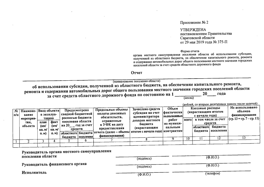 Постановление Правительства Саратовской области от 29.05.2019 N 375-П "О порядке предоставления из областного бюджета субсидии бюджетам поселений области на обеспечение капитального ремонта, ремонта и содержания автомобильных дорог общего пользования местного значения городских поселений области за счет средств областного дорожного фонда и условиях ее расходования" (вместе с "Положением о порядке предоставления из областного бюджета субсидии бюджетам поселений области на обеспечение капитального ремонта, ремонта и содержания автомобильных дорог общего пользования местного значения городских поселений области за счет средств областного дорожного фонда и условиях ее расходования")