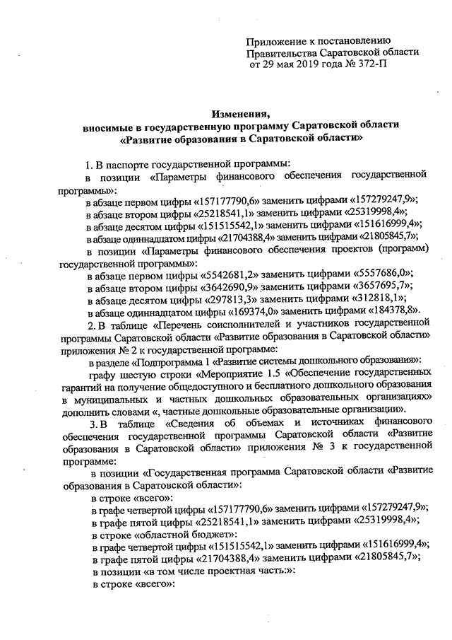 Постановление Правительства Саратовской области от 29.05.2019 N 372-П "О внесении изменений в государственную программу Саратовской области "Развитие образования в Саратовской области"