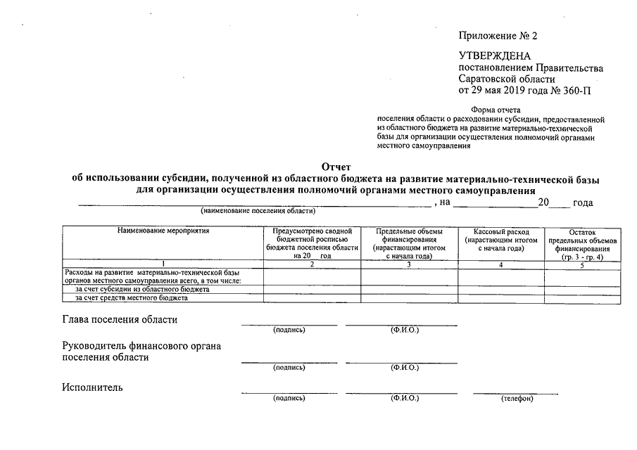 Постановление Правительства Саратовской области от 29.05.2019 N 360-П "Об утверждении Положения о предоставлении субсидии из областного бюджета бюджетам поселений области на развитие материально-технической базы для организации осуществления полномочий органами местного самоуправления"