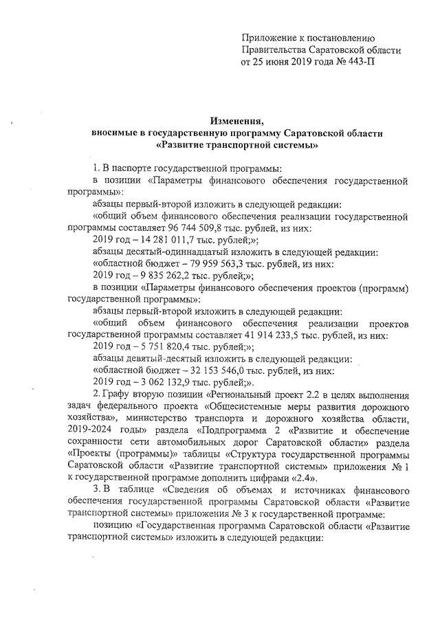 Постановление Правительства Саратовской области от 25.06.2019 N 443-П "О внесении изменений в государственную программу Саратовской области "Развитие транспортной системы"