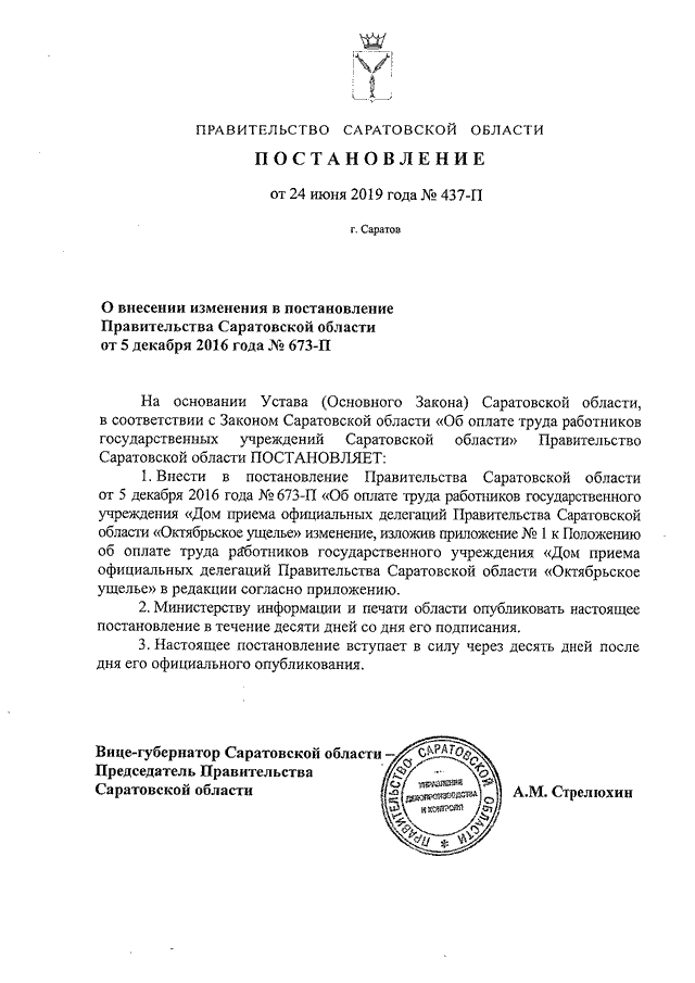 Постановление Правительства Саратовской области от 24.06.2019 N 437-П "О внесении изменения в постановление Правительства Саратовской области от 5 декабря 2016 года N 673-П"