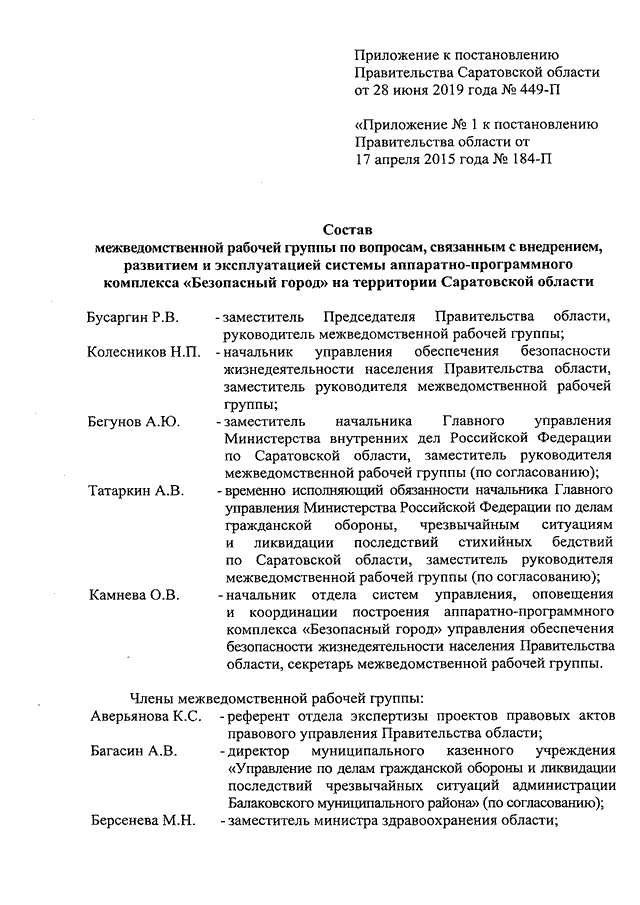 Постановление Правительства Саратовской области от 28.06.2019 N 449-П "О внесении изменения в постановление Правительства Саратовской области от 17 апреля 2015 года N 184-П"