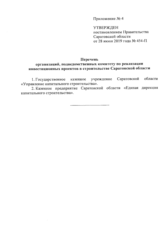 Постановление Правительства Саратовской области от 28.06.2019 N 454-П "О создании комитета по реализации инвестиционных проектов в строительстве Саратовской области" (вместе с "Положением о комитете по реализации инвестиционных проектов в строительстве Саратовской области", "Перечнем организаций, подведомственных комитету по реализации инвестиционных проектов в строительстве Саратовской области")