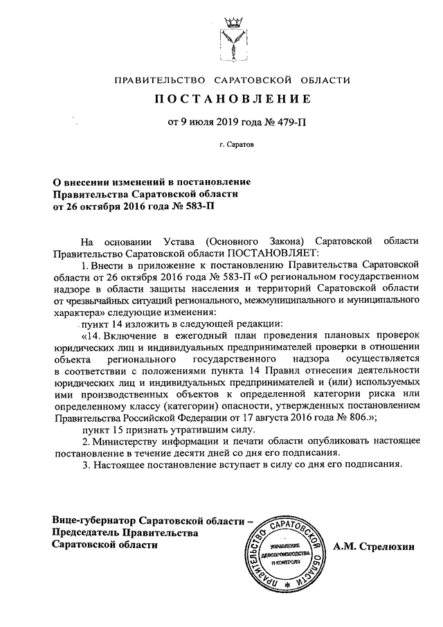 Постановление Правительства Саратовской области от 09.07.2019 N 479-П "О внесении изменений в постановление Правительства Саратовской области от 26 октября 2016 года N 583-П"