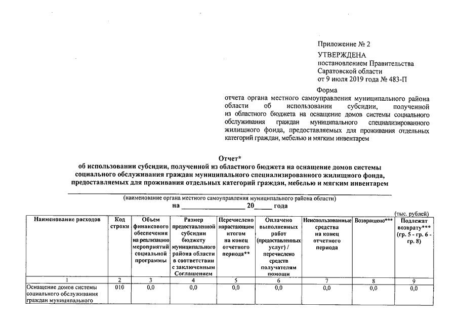 Постановление Правительства Саратовской области от 09.07.2019 N 483-П "Об утверждении Положения о порядке предоставления из областного бюджета субсидии бюджетам муниципальных районов области на оснащение домов системы социального обслуживания граждан муниципального специализированного жилищного фонда, предоставляемых для проживания отдельных категорий граждан, мебелью и мягким инвентарем и условиях ее расходования"
