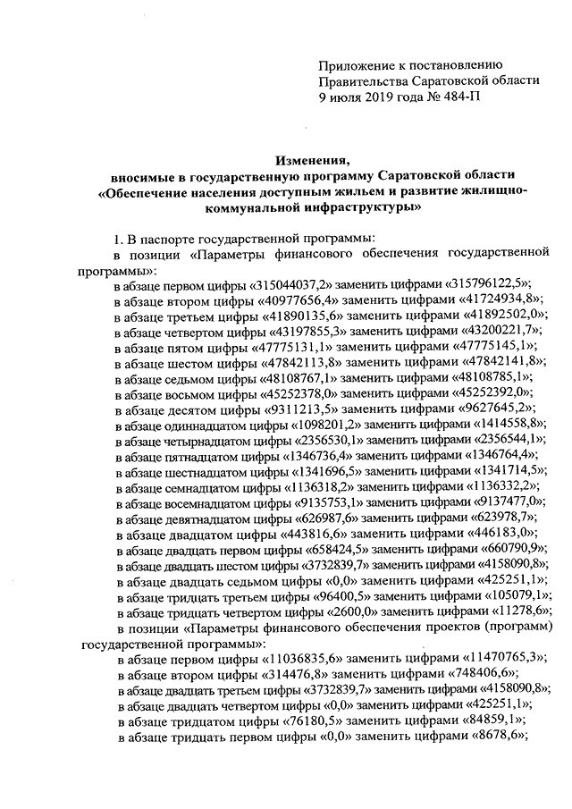 Постановление Правительства Саратовской области от 09.07.2019 N 484-П "О внесении изменений в государственную программу Саратовской области "Обеспечение населения доступным жильем и развитие жилищно-коммунальной инфраструктуры"