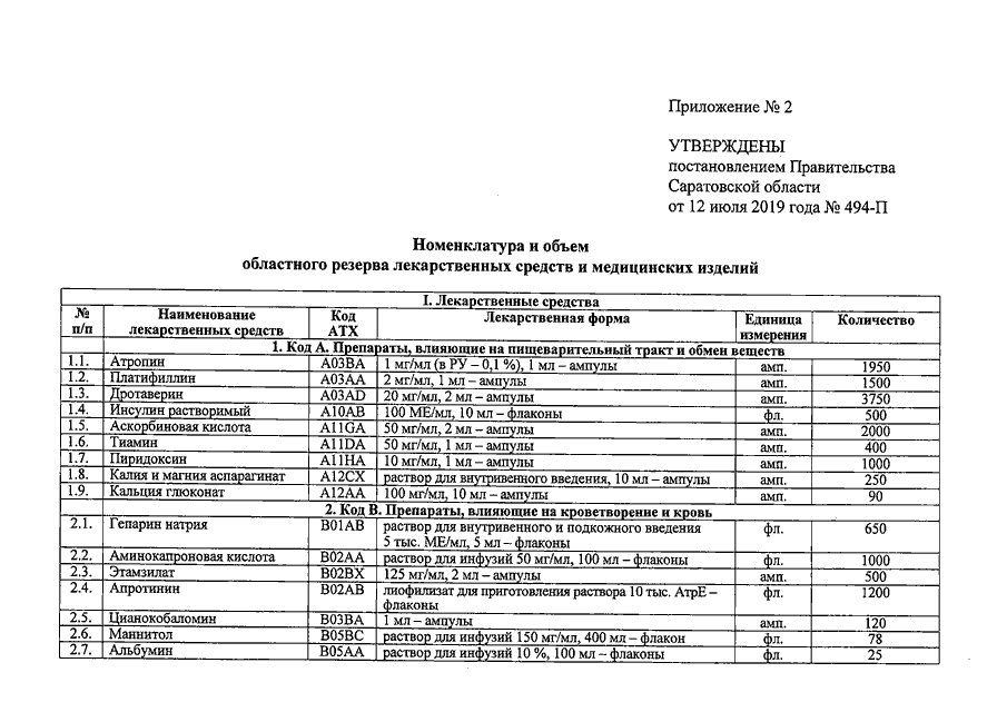 Постановление Правительства Саратовской области от 12.07.2019 N 494-П "О создании областного резерва лекарственных средств и медицинских изделий" (вместе с "Положением об областном резерве лекарственных средств и медицинских изделий", "Номенклатурой и объемом областного резерва лекарственных средств и медицинских изделий")