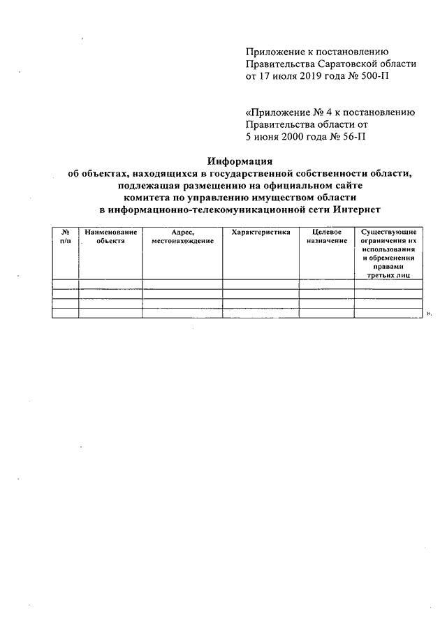 Постановление Правительства Саратовской области от 17.07.2019 N 500-П "О внесении изменений в постановление Правительства Саратовской области от 5 июня 2000 года N 56-П"