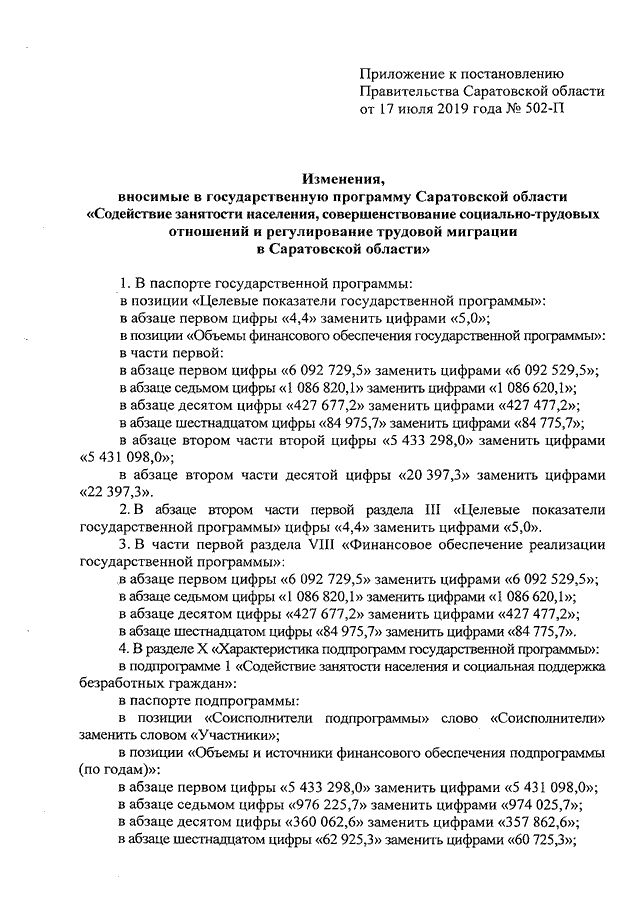 Постановление Правительства Саратовской области от 17.07.2019 N 502-П "О внесении изменений в государственную программу Саратовской области "Содействие занятости населения, совершенствование социально-трудовых отношений и регулирование трудовой миграции в Саратовской области"
