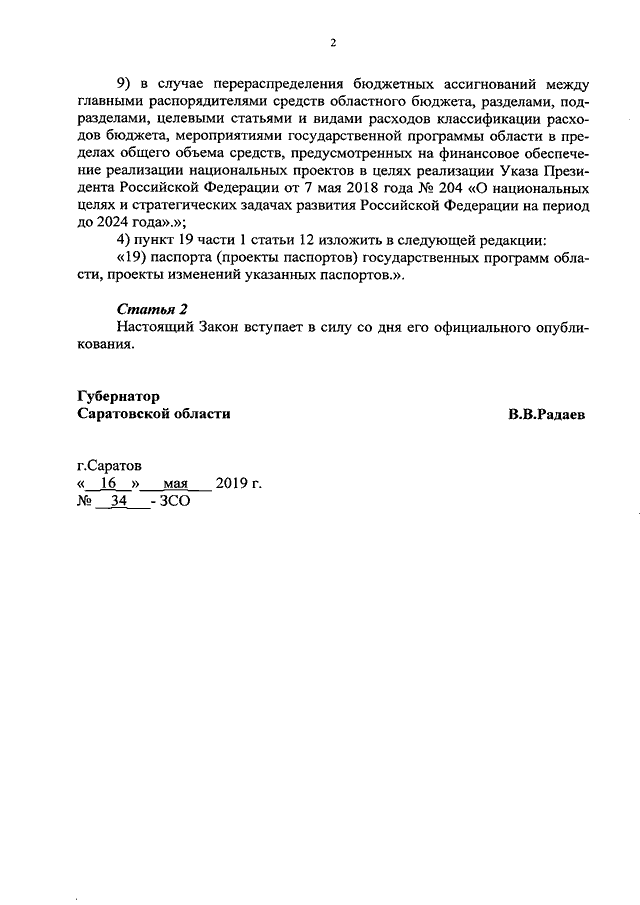 Закон Саратовской области от 16.05.2019 N 34-ЗСО "О внесении изменений в Закон Саратовской области "О бюджетном процессе в Саратовской области" (принят Саратовской областной Думой 15.05.2019)