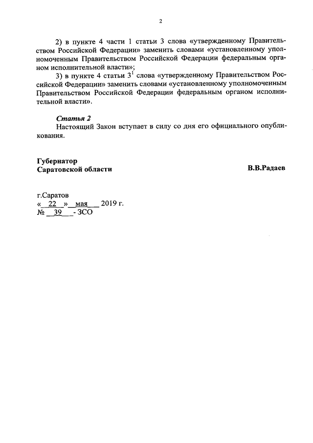 Закон Саратовской области от 22.05.2019 N 39-ЗСО "О внесении изменений в Закон Саратовской области "О предоставлении жилых помещений в Саратовской области" (принят Саратовской областной Думой 15.05.2019)