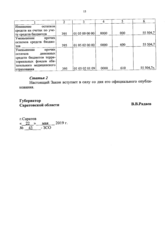 Закон Саратовской области от 22.05.2019 N 43-ЗСО "О внесении изменений в Закон Саратовской области "О бюджете Территориального фонда обязательного медицинского страхования Саратовской области на 2019 год и на плановый период 2020 и 2021 годов" (принят Саратовской областной Думой 15.05.2019)