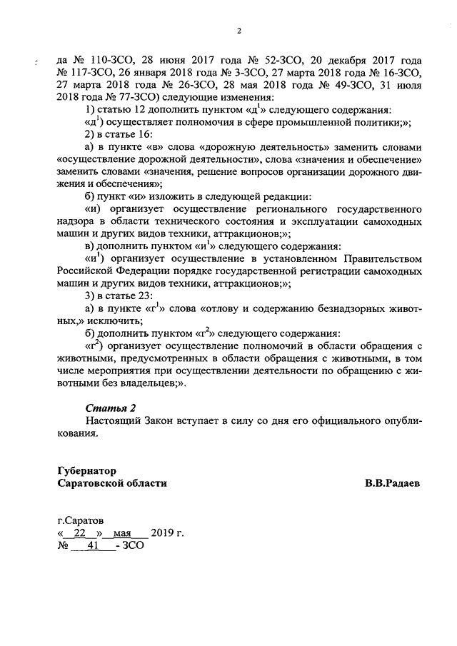 Закон Саратовской области от 22.05.2019 N 41-ЗСО "О внесении изменений в Закон Саратовской области "О Правительстве Саратовской области" (принят Саратовской областной Думой 15.05.2019)