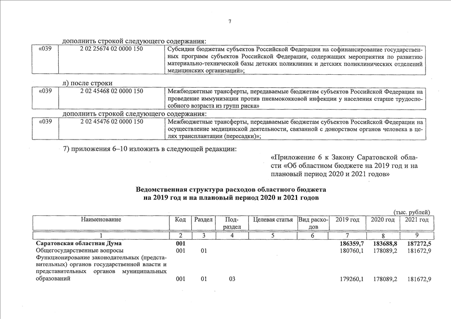 Закон Саратовской области от 01.07.2019 N 64-ЗСО "О внесении изменений в Закон Саратовской области "Об областном бюджете на 2019 год и на плановый период 2020 и 2021 годов" (принят Саратовской областной Думой 26.06.2019)