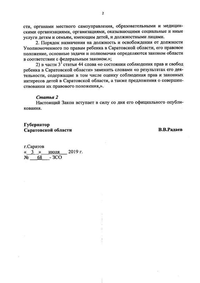 Закон Саратовской области от 03.07.2019 N 68-ЗСО "О внесении изменений в Устав (Основной Закон) Саратовской области" (принят Саратовской областной Думой 26.06.2019)