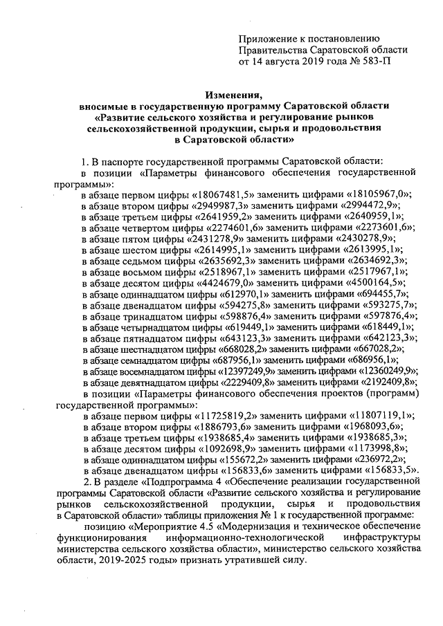 Постановление Правительства Саратовской области от 14.08.2019 N 583-П "О внесении изменений в государственную программу Саратовской области "Развитие сельского хозяйства и регулирование рынков сельскохозяйственной продукции, сырья и продовольствия в Саратовской области"