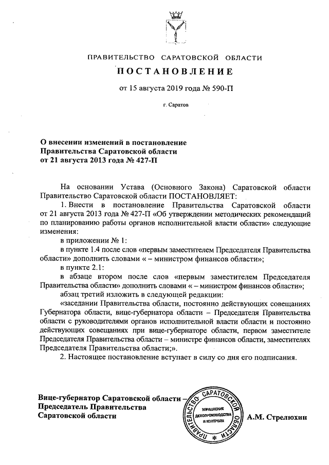 Постановление Правительства Саратовской области от 15.08.2019 N 590-П "О внесении изменений в постановление Правительства Саратовской области от 21 августа 2013 года N 427-П"