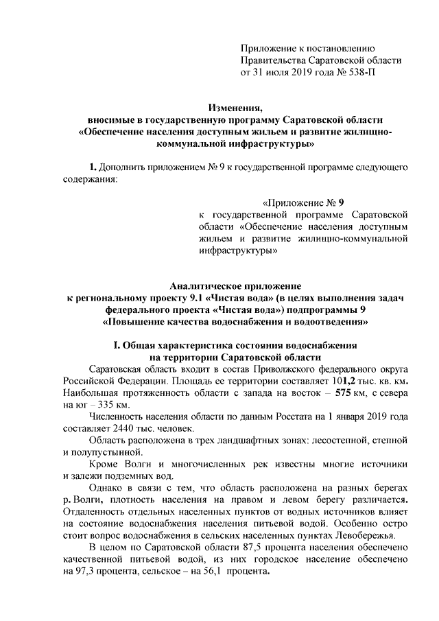 Постановление Правительства Саратовской области от 31.07.2019 N 538-П "О внесении изменений в государственную программу Саратовской области "Обеспечение населения доступным жильем и развитие жилищно-коммунальной инфраструктуры"