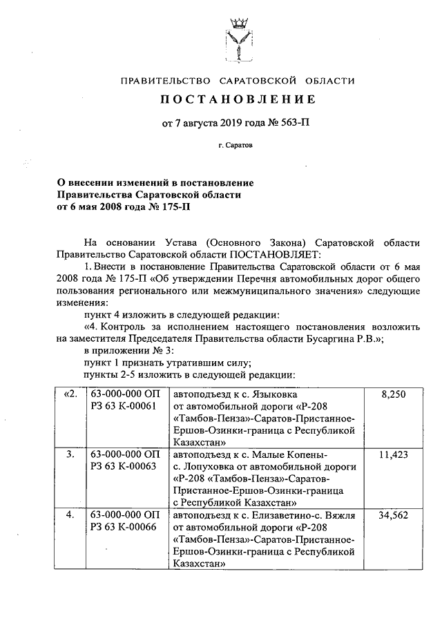 Постановление Правительства Саратовской области от 07.08.2019 N 563-П "О внесении изменений в постановление Правительства Саратовской области от 6 мая 2008 года N 175-П"