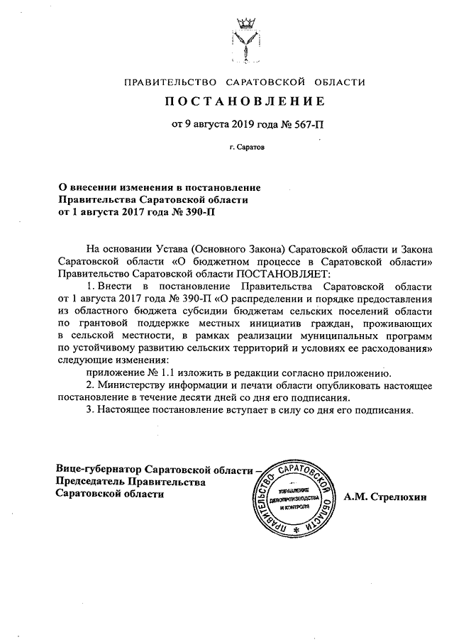 Постановление Правительства Саратовской области от 09.08.2019 N 567-П "О внесении изменения в постановление Правительства Саратовской области от 1 августа 2017 года N 390-П"