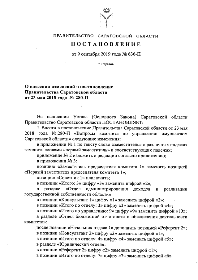 Постановление Правительства Саратовской области от 09.09.2019 N 636-П "О внесении изменений в постановление Правительства Саратовской области от 23 мая 2018 года N 280-П"