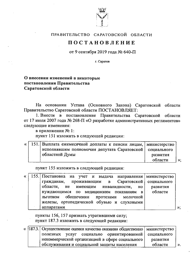 Постановление Правительства Саратовской области от 09.09.2019 N 640-П "О внесении изменений в некоторые постановления Правительства Саратовской области"