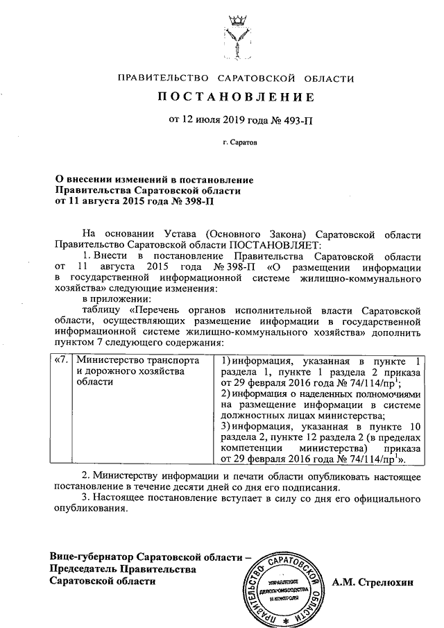 Постановление Правительства Саратовской области от 12.07.2019 N 493-П "О внесении изменений в постановление Правительства Саратовской области от 11 августа 2015 года N 398-П"