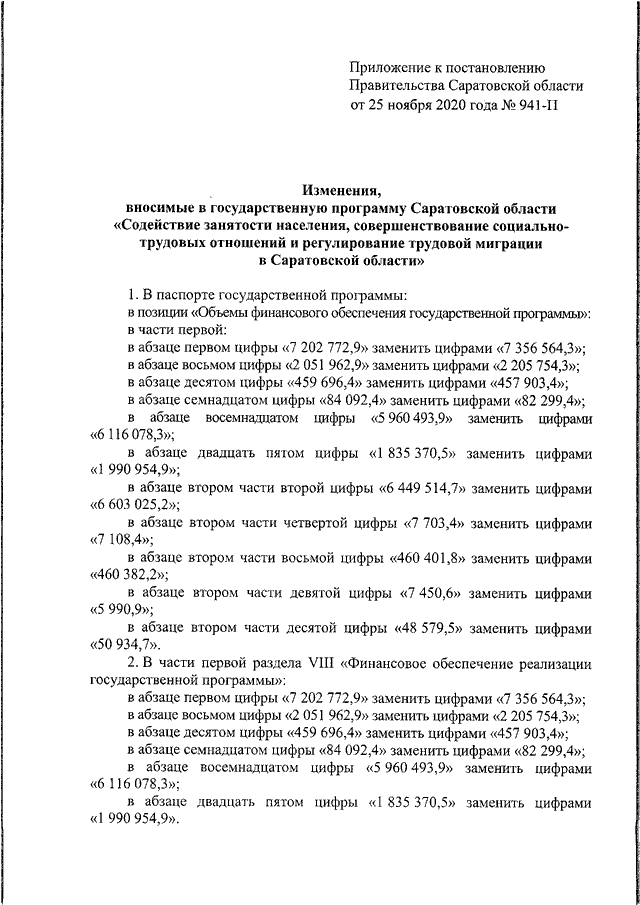 Постановление Правительства Саратовской области от 25.11.2020 N 941-П "О внесении изменений в государственную программу Саратовской области "Содействие занятости населения, совершенствование социально-трудовых отношений и регулирование трудовой миграции в Саратовской области"